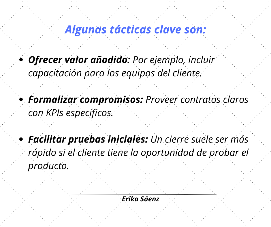 El cierre en una venta técnica no se limita a negociar precios. En cambio, implica asegurar que el cliente reciba valor añadido, como soporte técnico continuo, capacitación personalizada y garantías claras sobre el rendimiento del producto o servicio. Un cierre efectivo debe basarse en un enfoque colaborativo, donde el cliente perciba que está invirtiendo en una solución integral y confiable.